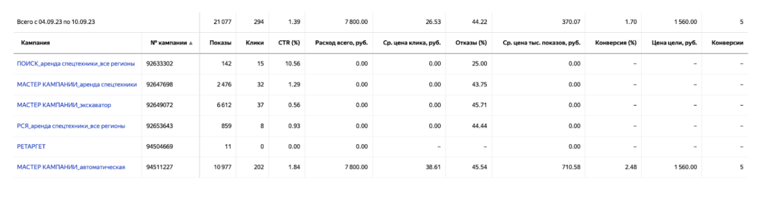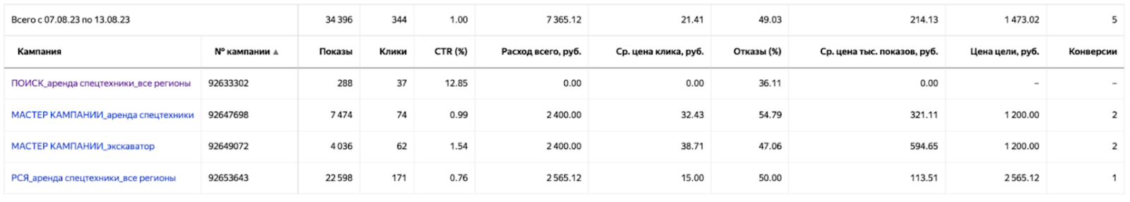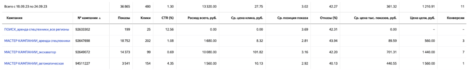 РСЯ решили отключить, чтобы перераспределить бюджет на Поиск и Мастер кампаний.
